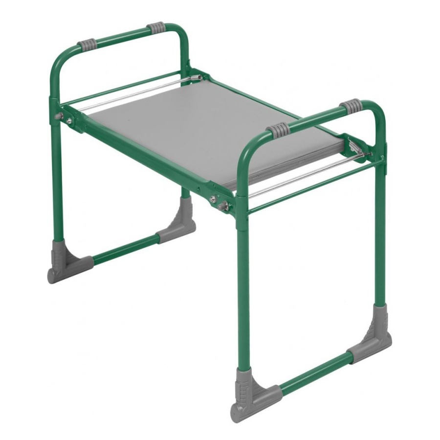 Складная металлическая скамейка для работы в саду и на дачном участке. Подходит также в качестве походной скамейки для активного отдыха и рыбалки.