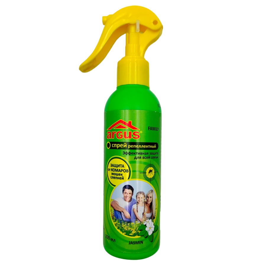 Лосьон-спрей от комаров с курком ARGUS FAMILY (репеллентный) – для защиты людей от нападения кровососущих насекомых при нанесении на открытые части тела.