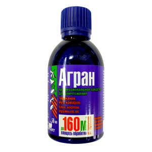 - Профессиональный инсектоакарицидный концентрат«Агран» предназначен для уничтожения насекомых на объектах различных категорий, в том числе пищевых, лечебных, детских, коммунально-бытовых.