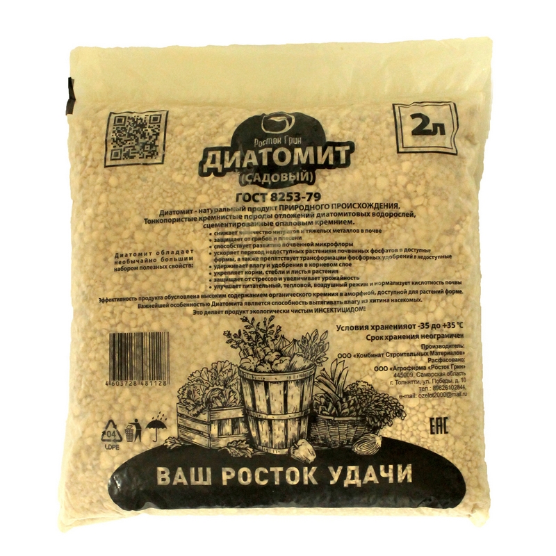 Природный почвоулучшитель, мягкая горная порода, богатая органическим кремнием. Существенно улучшает структуру почвы, надежно избавляет от вредителей, увеличивает плодородие и повышает урожайность растений в несколько раз.