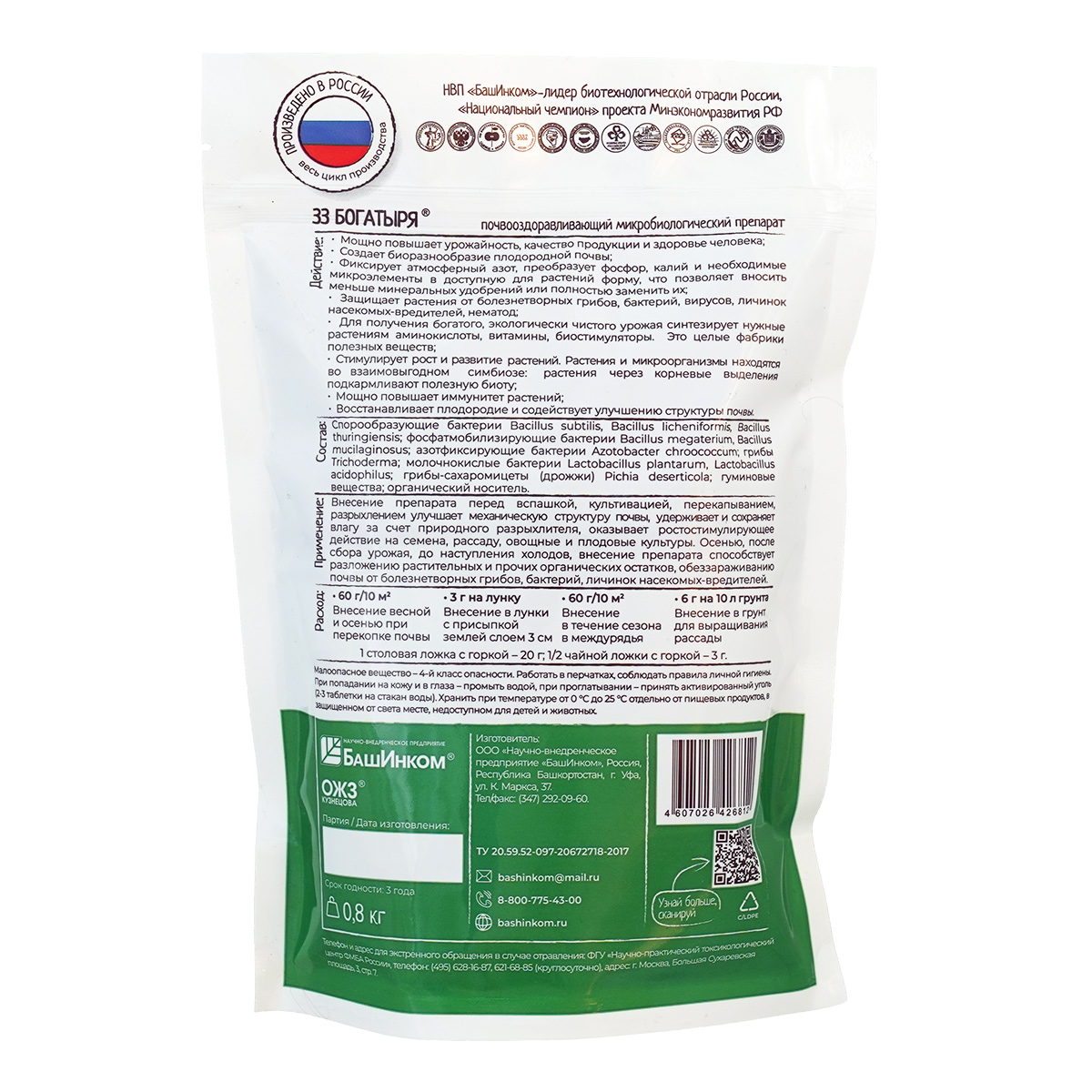 Уникальный почвооздоравливающий, оживляющий, восстанавливающий плодородие почвы микробиологический препарат. Он содержит 33 штамма полезных почвенных микроорганизмов на органическом носителе в форме гранул.