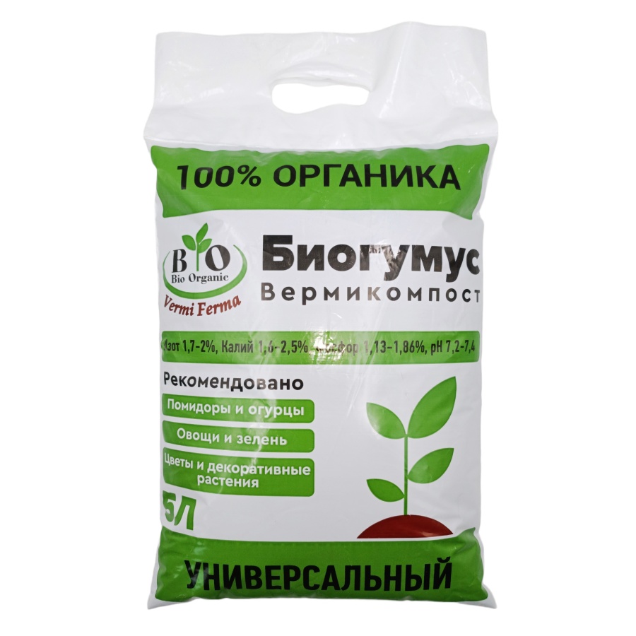 Биогумус "БиоОрганик" – экологически чистое комплексное органическое удобрение на основе продуктов жизнедеятельности дождевых червей, содержащее в себе полный набор питательных веществ и микроэлементов необходимых для быстрого и качественного роста и развития растений.