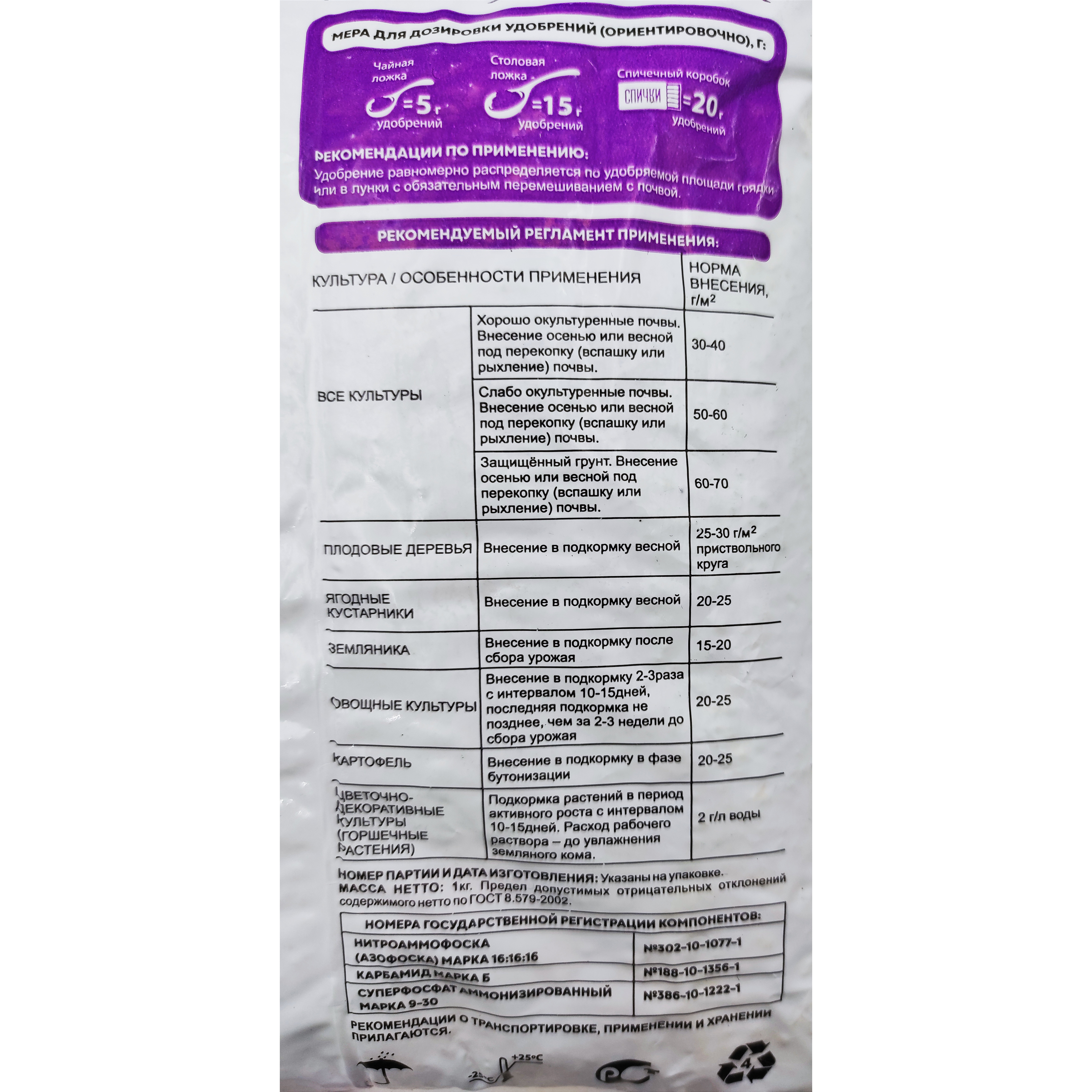 - Используется для основного (под перекопку), местного (в лунку) внесения, а также для подкормок в период вегетации растений.