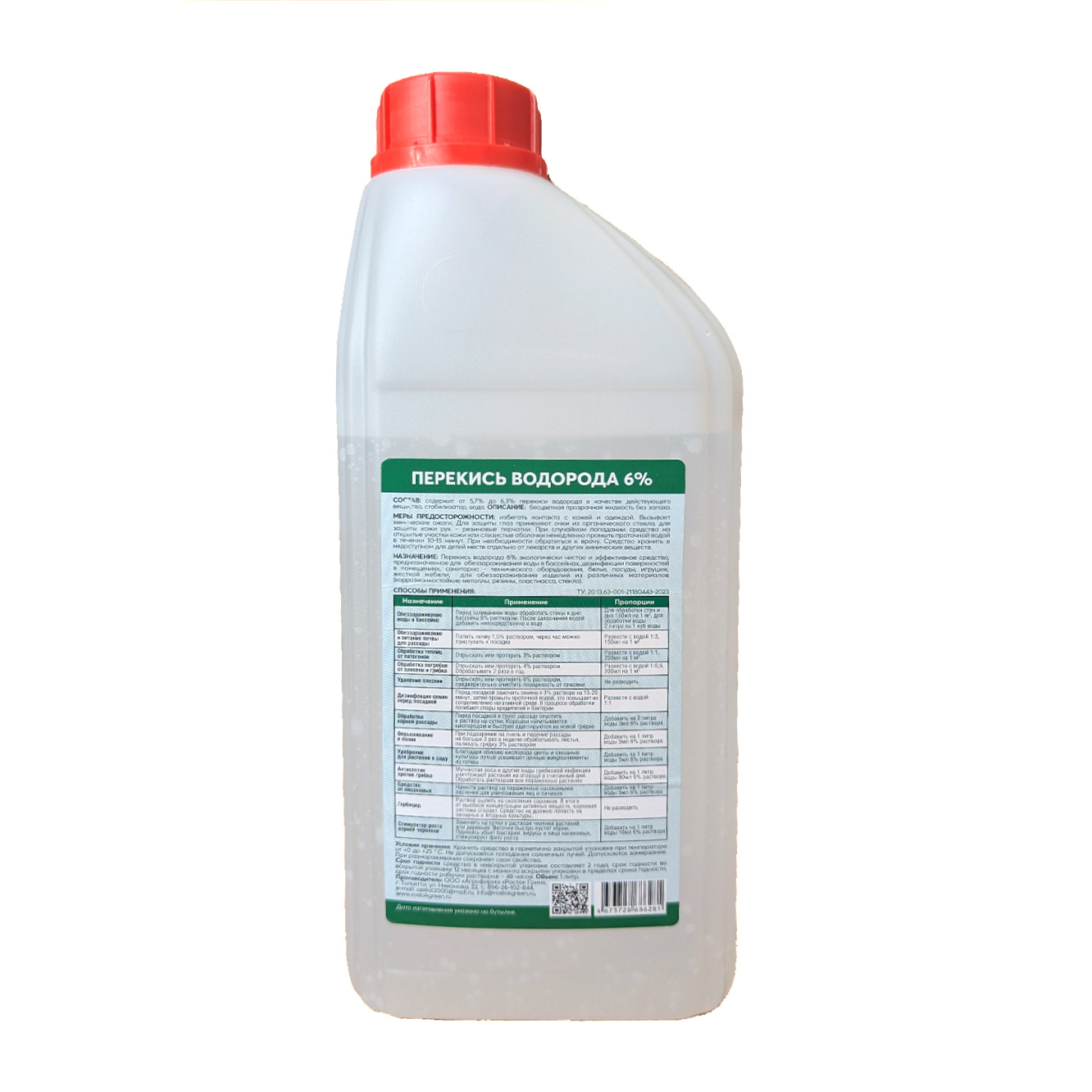 Перекись водорода 6% экологически чистое и эффективное средство, предназначенное для садово-огородных работ (для подкормки растений, обработки сада от вредителей), обеззараживания воды в бассейнах, дезинфекции поверхностей в помещениях, санитарно-технического оборудования, белья, посуды, игрушек, жесткой мебели, для обеззараживания изделий из различных материалов(коррозионностойкие металлы, резины, пластмасса, стекло).