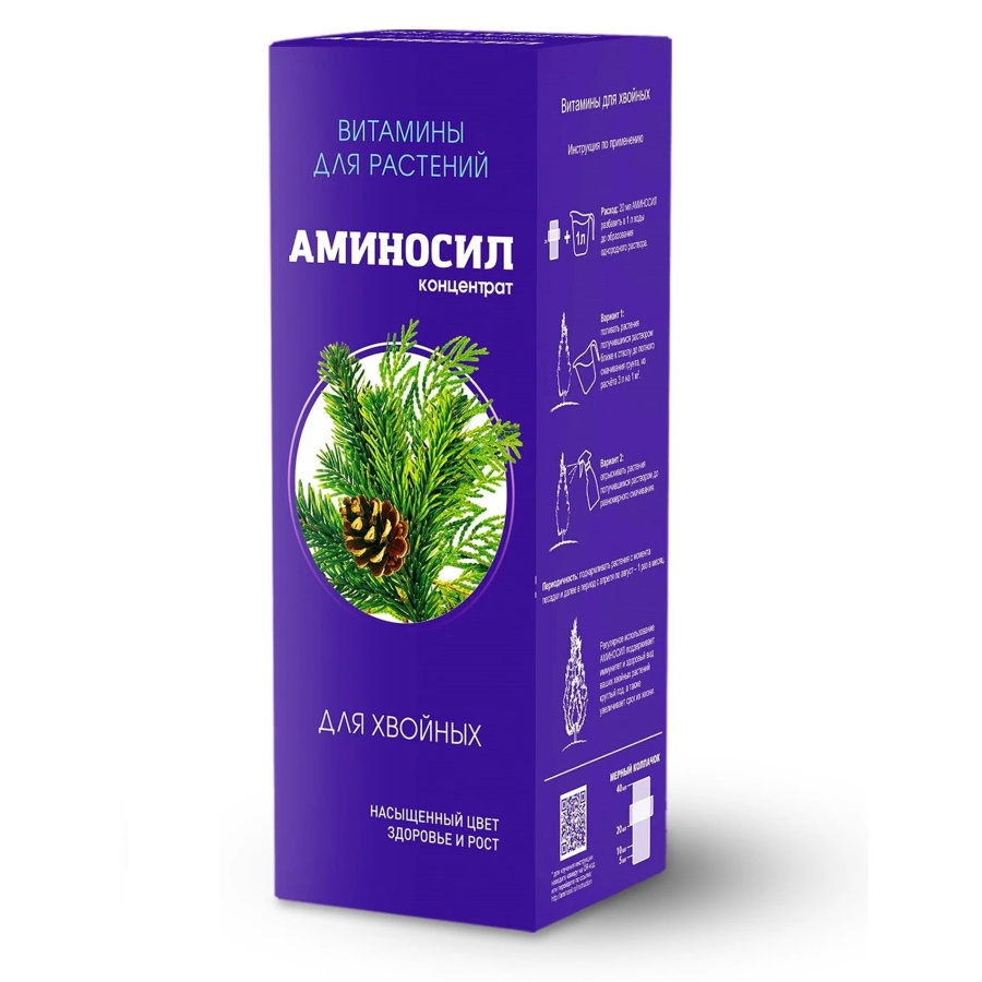 Жидкий концентрат Аминосил витаминный органический комплекс для хвойных восстанавливает и улучшает декоративность хвойных растений. Помогает сохранить здоровый вид (декоративность) после пересадки. Защищает от пожелтения хвои. Помогает растению подготовиться к зимнему периоду. Безопасен для людей и животных.
