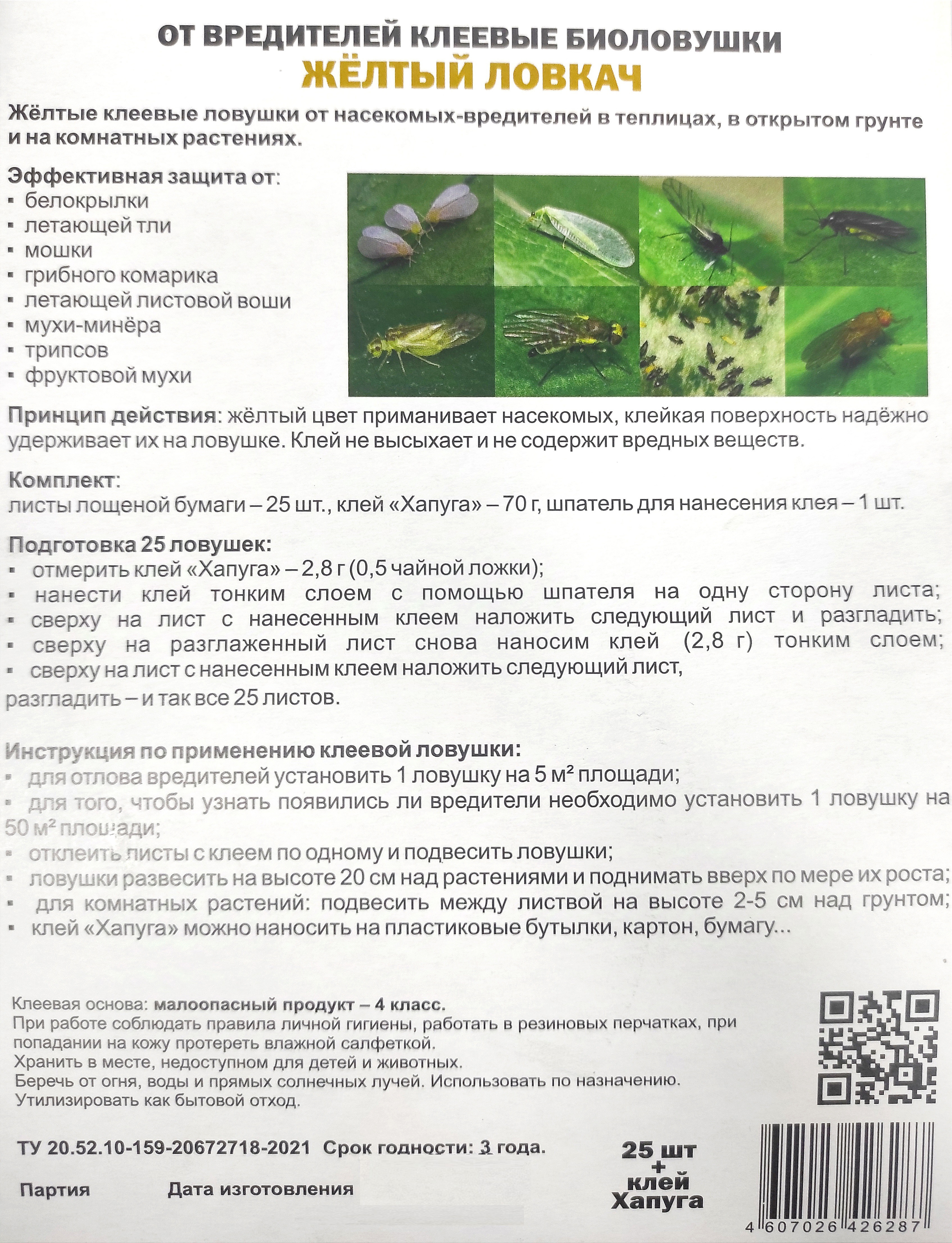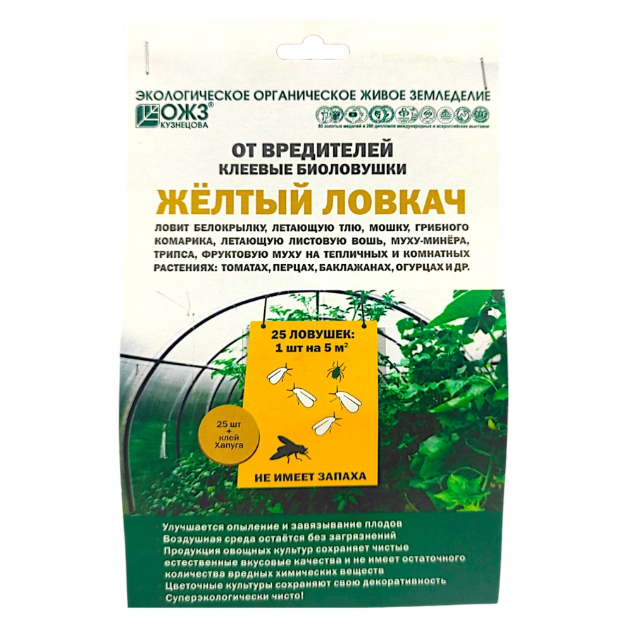 - состав: ловушки 23х13– 25штук, клей "Желтый Ловкач"– 70г, шпатель для нанесения клея– 1шт;