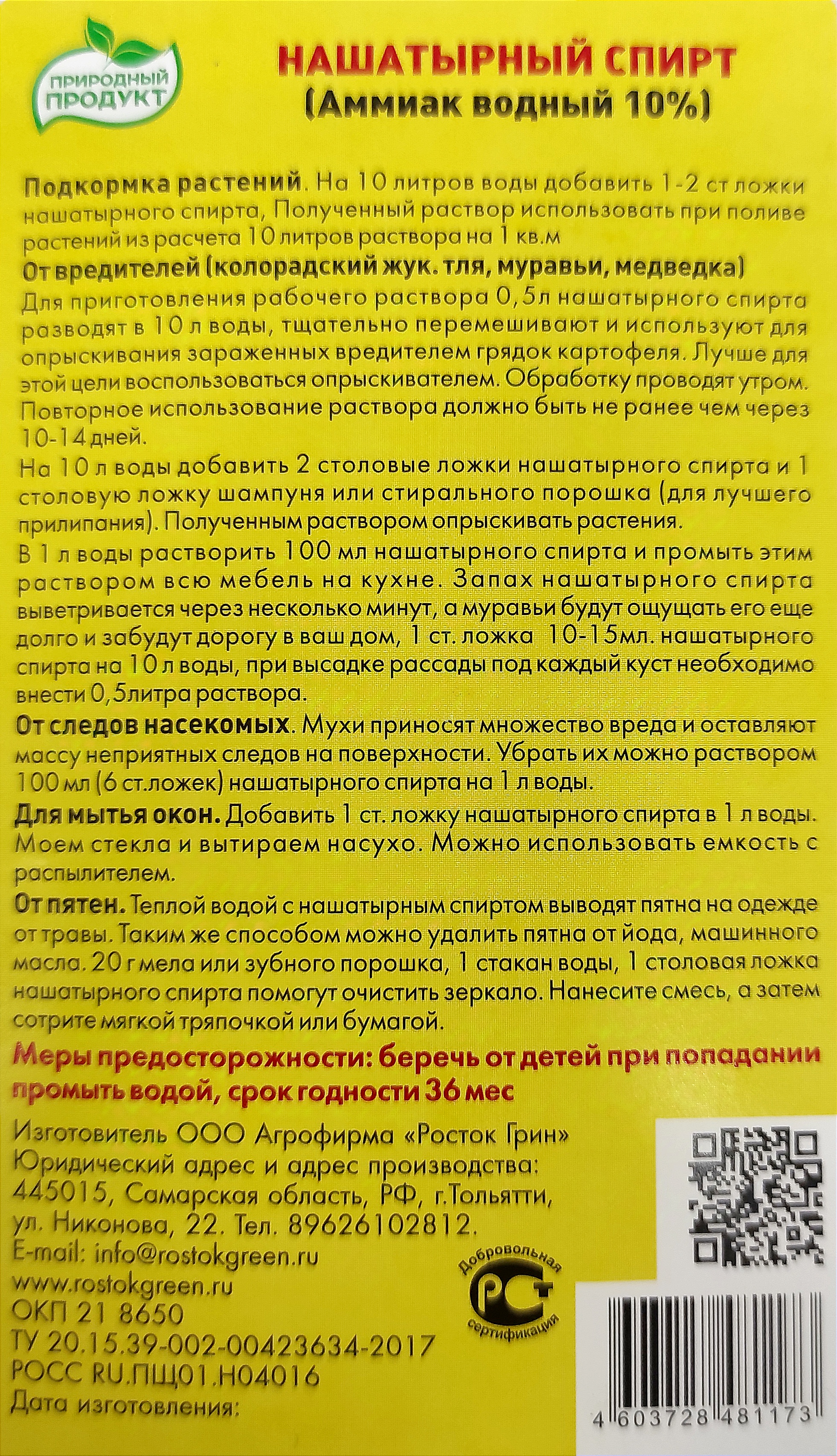 Нашатырный спирт обладает уникальными свойствами и объединяет в себе способность обеспечить растения необходимыми элементами, отпугивать насекомых и их личинок от овощей, ягодников, кустарников и цветов. Используется для предпосадочной обработки грунта, прикорневой подкормки растений и опрыскивания.