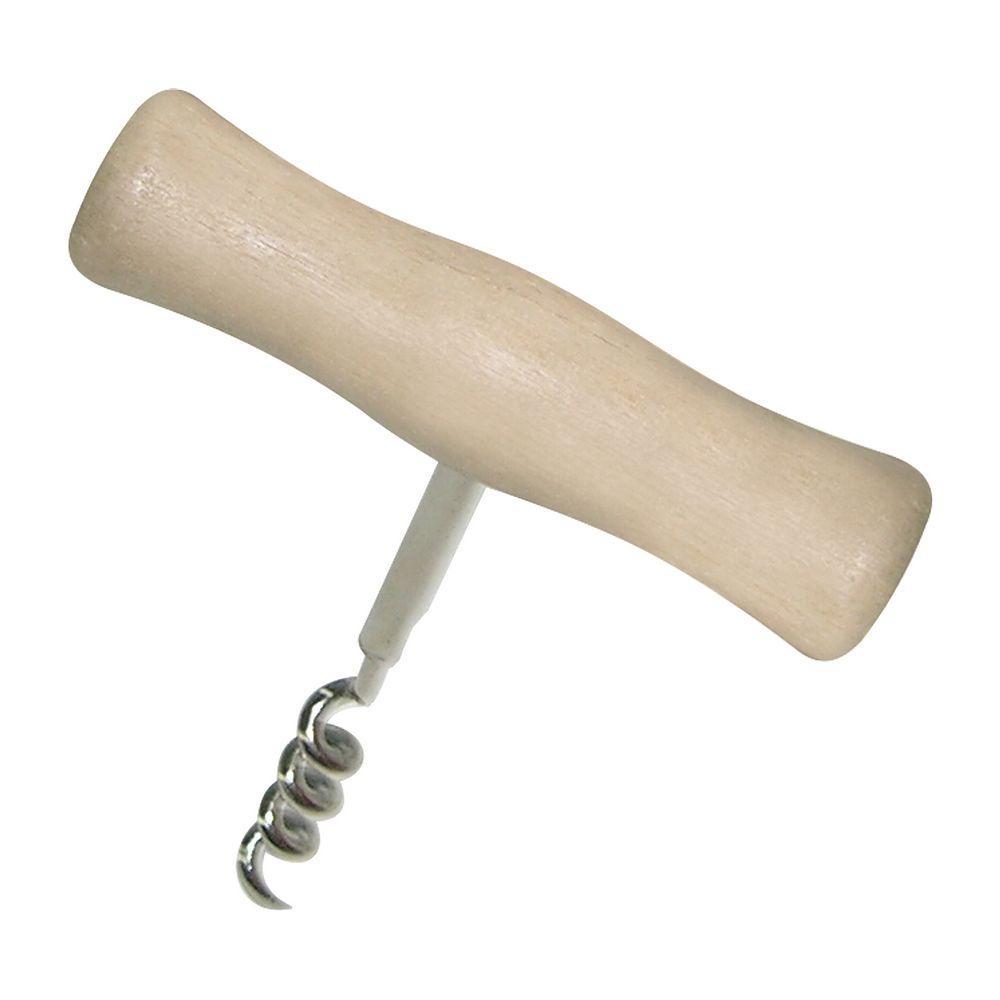 Классическая конструкция Т-образного штопора состоит из металлической спирали и деревянной ручки. Инструмент подходит для домашнего использования, его удобно брать с собой в поездку, на пикник. Изделие почти не занимает места, легко отмывается от загрязнений. Чтобы открыть бутылку, закрутите винт строго посередине, чтобы не раскрошить пробку, и медленными движениями вытягивайте ее из горлышка. Храните изделие в недоступном для детей месте.