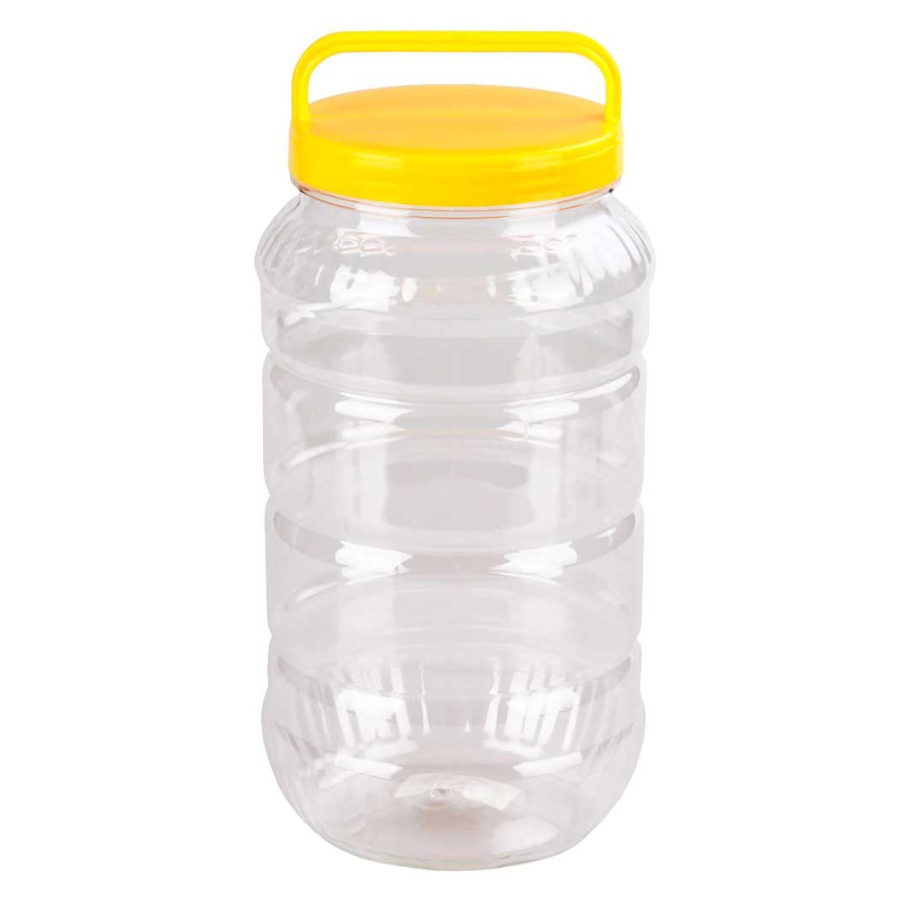 Прозрачный бидон для длительного хранения, транспортировки и расфасовки на продажу различных продуктов: круп, макаронных изделий, муки, сахара, молока, меда, варенья и т.д.
