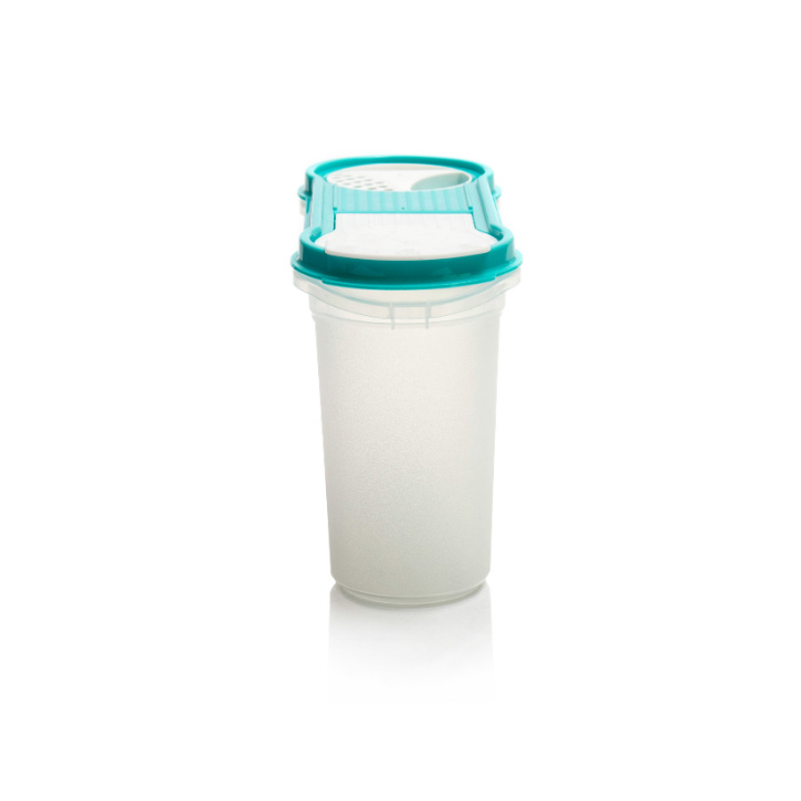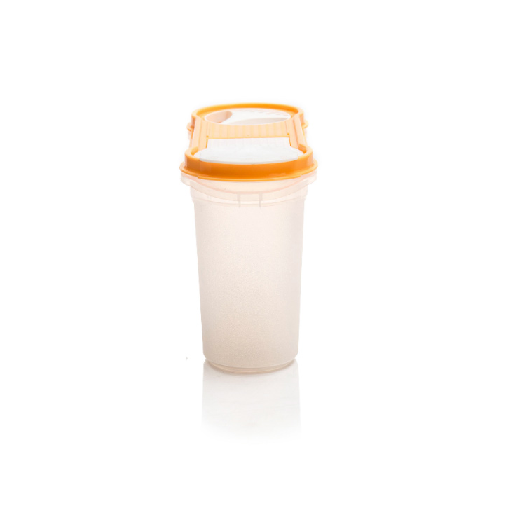 Банка с дозаторами и герметичной крышкой для хранения круп, бобовых, макаронных изделий, сахара, муки и других сыпучих продуктов.