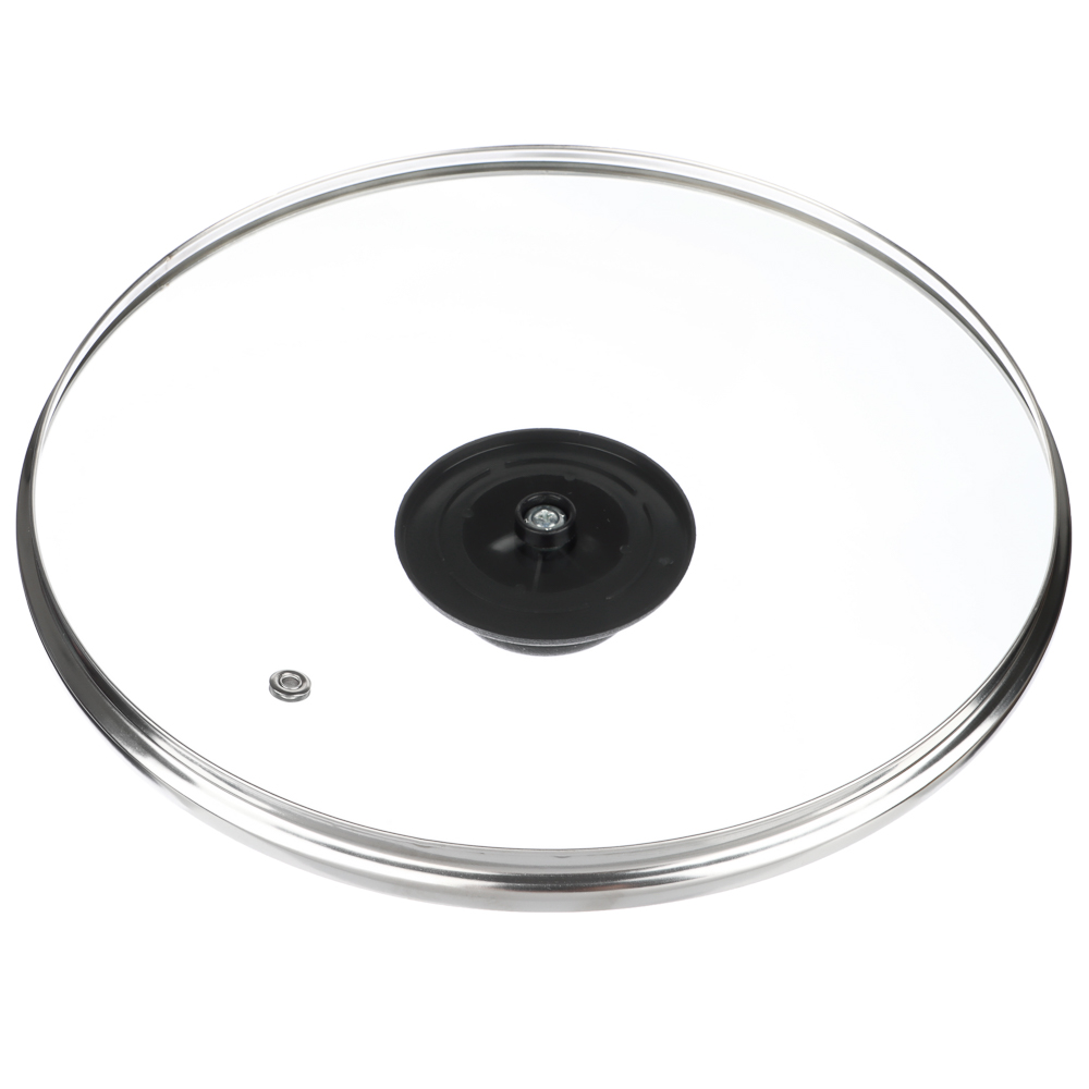 Жаропрочная крышка диаметром 24см из термостойкого стекла с ободком из высококачественного металла и ненагревающейся ручкой подходит для кастрюль и сотейников. Металлический ободок препятствует образованию сколов, а ручка не скользит в руке и не нагревается во время приготовления. Прозрачная крышка позволяет полностью контролировать процесс приготовления без потери тепла.