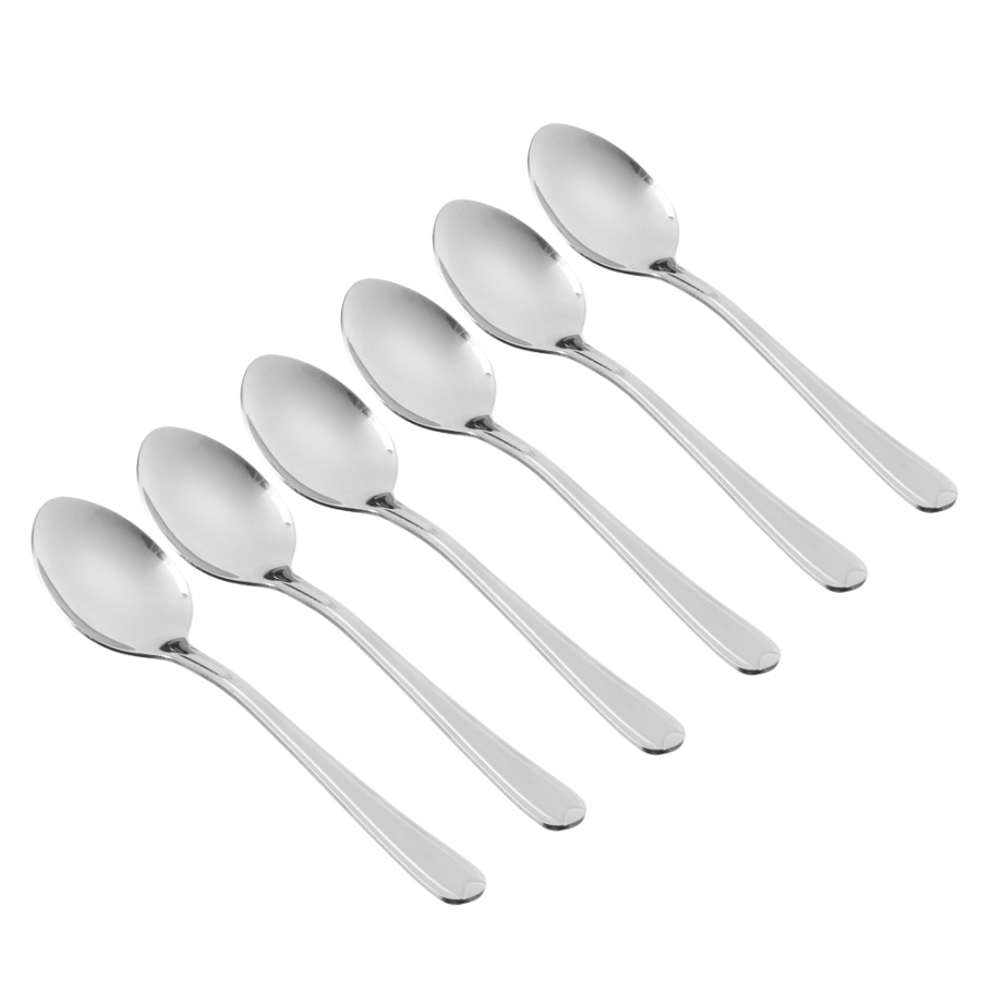 Набор из 6 чайных ложек, изготовленных из нержавеющей стали.