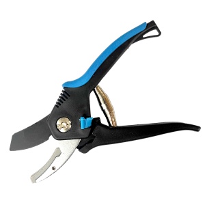 Наличие ленточной пружины обеспечивает продолжительный срок службы, а прорезиненные ручки – комфорт при работе с секатором.