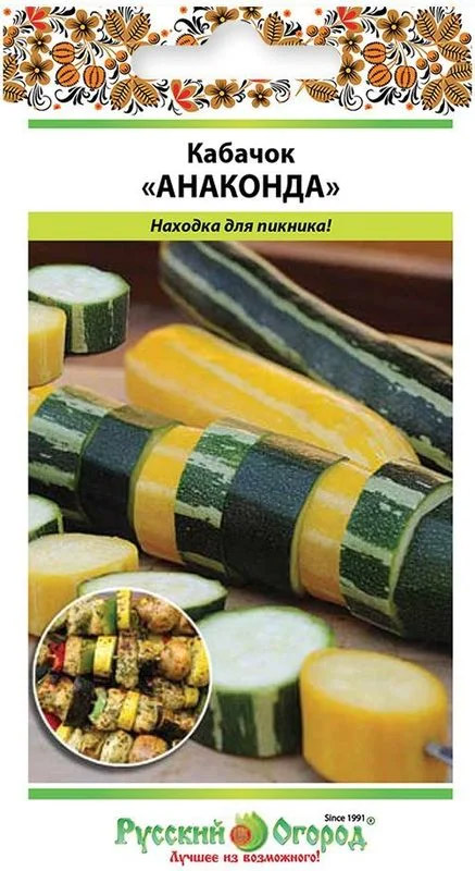 Кабачок Анаконда - великолепная смесь трех сортов кабачков-цуккини! Специальная подборка плодов равных размеров идеальна для нарезки аппетитных ломтиков, удобных для приготовления на мангале и барбекю. Отличное дополнение к шашлыкам на вашем пикнике! Яркие, красочные плоды оживят застолье, их можно смешать также с картофелем и привычным мясом или рыбой, сделать рататуй и множество других потрясающих блюд! Разные цветовые сочетания можно комбинировать в разных блюдах, чтобы это смотрелось визуально интереснее. Одним словом, фантазируйте и придайте вашему столу эстетическую изюминку!