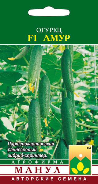 «Амур F1» — очень скороспелый гибрид-спринтер: первые плоды — уже на 37–38 день! Овально-веретеновидные зеленцы длиной 12–15 см — с частым опушением — обладают высокими засолочными и вкусовыми качествами.