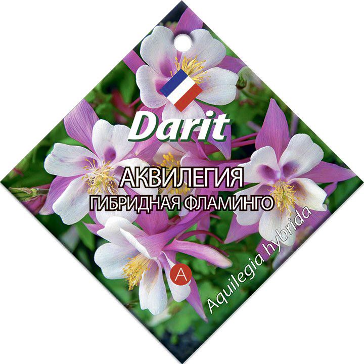 Аквилегия гибридная Фламинго, многолетник. Многолетнее растение высотой до 70 см. Цветки бело-розовые, крупные, со шпорцами, сильно загнутыми на конце. Образует полураскидистые кусты 40-50 см в диаметре.