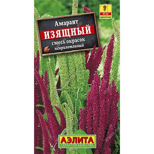 ОднолетникВысота растения 40 смБлистательное шоу из своих пышных султанов и красивых листьев устроит на ваших клумбах амарант. В летнюю пору его талант проявляется в полной мере и характеризуется особенно длительным цветением. Благодаря чудному цветению и выразительной форме куста он гармонично вливается в любые садовые ансамбли, хорошо себя чувствует в вазонах и контейнерах. Цветы амаранта долго сохраняются в срезке. Высохшие соцветия используют для зимних букетов.