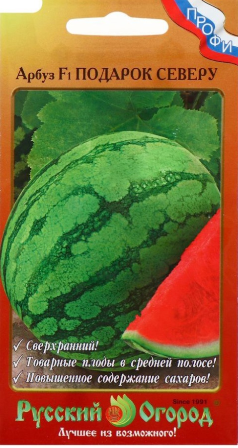 Раннеспелый арбуз для средней полосы. Плоды округлые, с темными полосами, массой 2-2.5 кг. Мякоть имеет красивую мякоть редкого оранжевого цвета, с повышенной сладостью - содержит 13% сахара.
