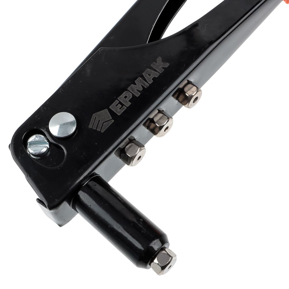 Ручной заклепочник Ермак 235мм - инструмент, предназначенный для соединения металлических деталей между собой при помощи алюминиевых заклепок. Удобная конструкция позволяет быстро, качественно и аккуратно клепать детали. Рукоять анатомической формы надежно ложится в руку. В нижней части рукояти предусмотрена металлическая скоба для фиксации и удобства хранения инструмента.