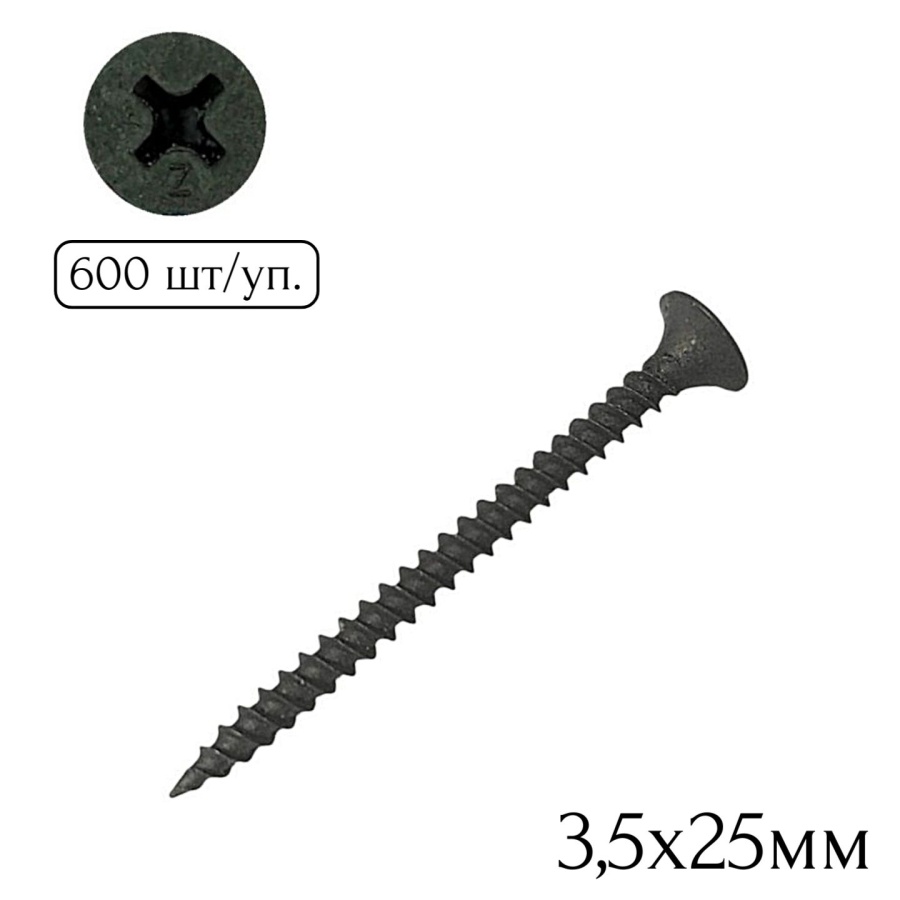Саморез для креп. гипсокарт. к металлу 3,5х25мм (600шт.)