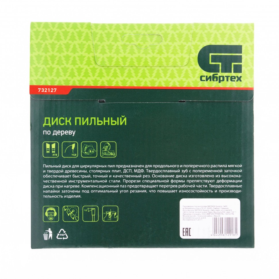 - комплектность: диск пильный — 1 шт., кольцо-переходник 16 мм / 20 мм — 1 шт.;