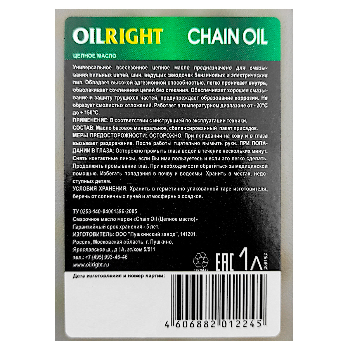 Смазочное масло для цепей бензопил на минеральной основе с высокой вязкостью и адгезионной способностью.