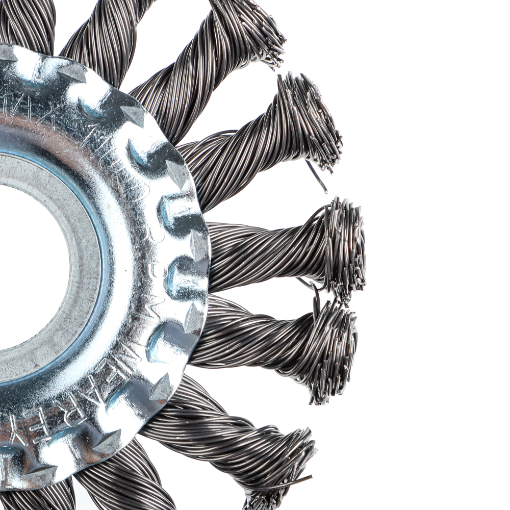 Щетка металлическая дисковая для УШМ 100 мм/22 мм эффективно зачищает различные поверхности, включая металлические, удаляя с них ржавчину, стойкие загрязнения и краску. Устанавливается на угловую шлифовальную машину и может использоваться для зачистки сварных швов. Рабочая поверхность из крученой стальной проволоки отлично справляется со своими функциями, выдерживает интенсивную эксплуатацию в течение длительного времени.