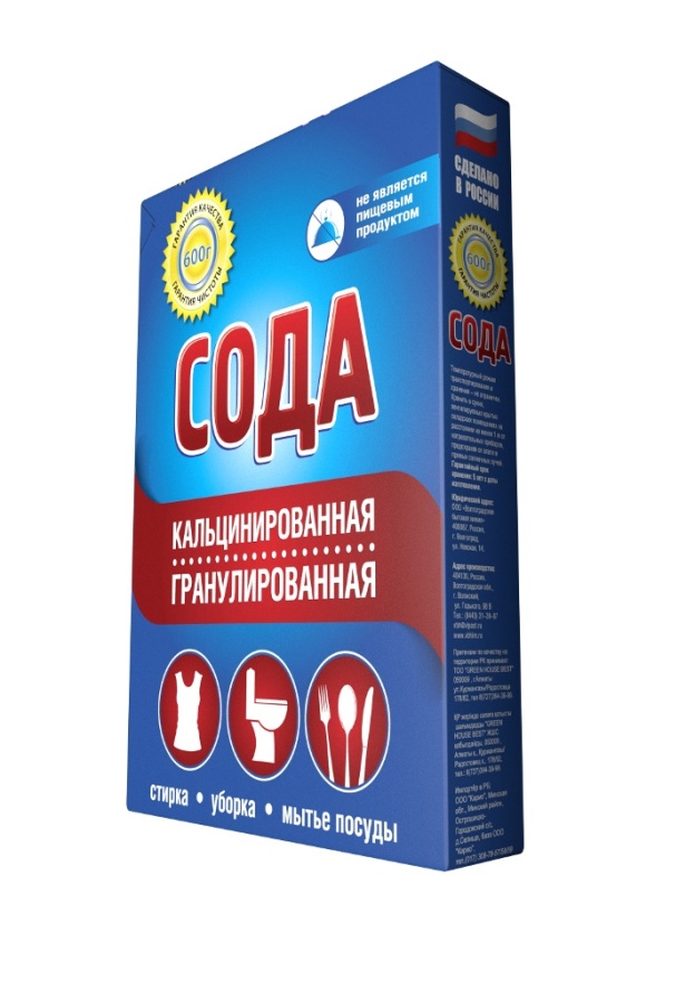 Сода кальцинированная – средство для умягчения воды при стирке и кипячении, а также замачивания хлопчатобумажных и льняных тканей, мытья фарфоровой, фаянсовой, эмалированной, керамической посуды и других хозяйственно-бытовых нужд.