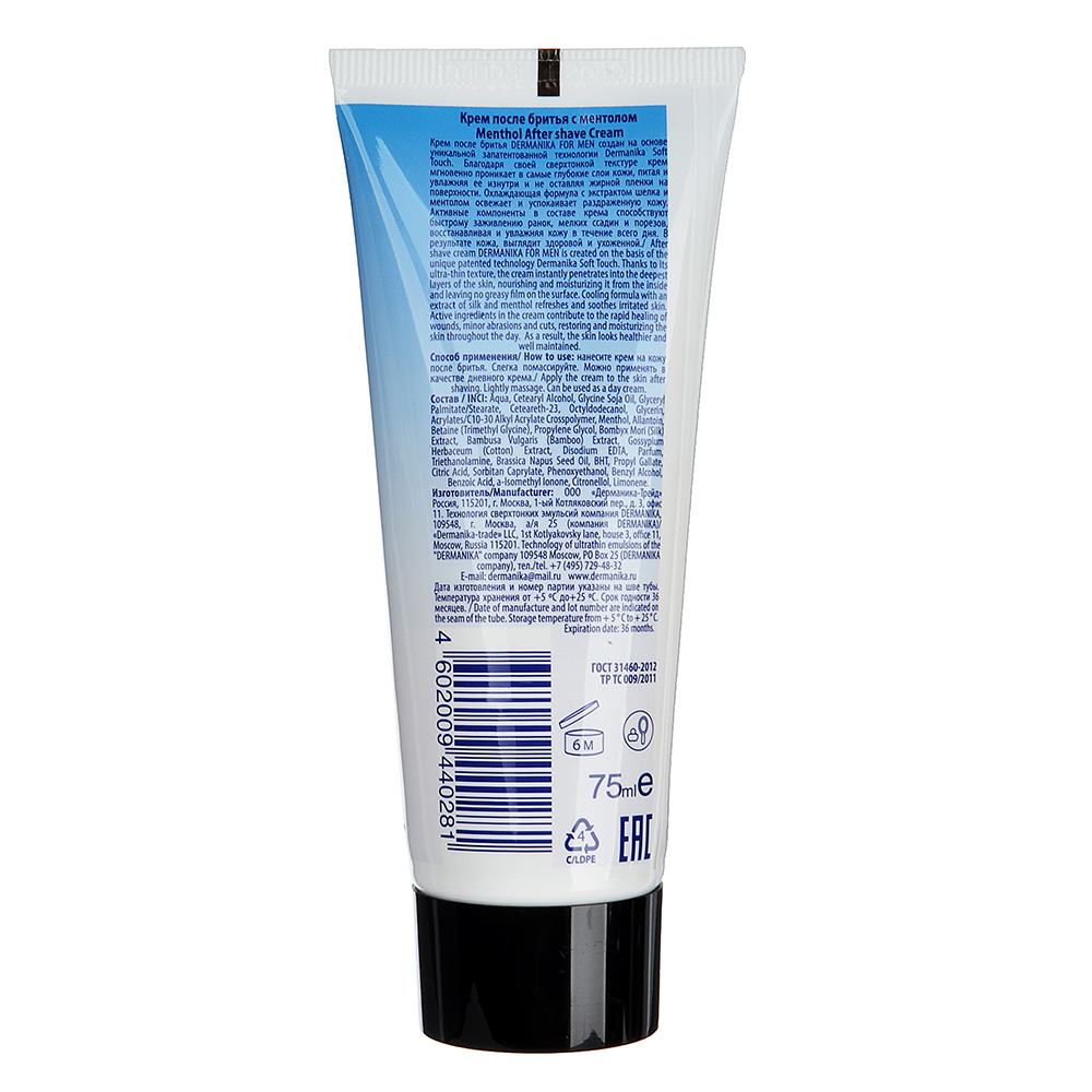 Крем после бритья "Dermanika" с вит.F, ментолом, 75мл (947-016)