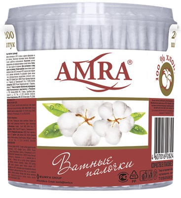 Ватные палочки AMRA изготовлены из 100% хлопка и надёжно зафиксирован на пластиковой палочке. Моментально впитывают влагу и не оставляют мелких ворсинок. Эластичные пластиковые палочки обеспечивают максимальное удобство использования. Предназначены для коррекции макияжа и личной гигиены.