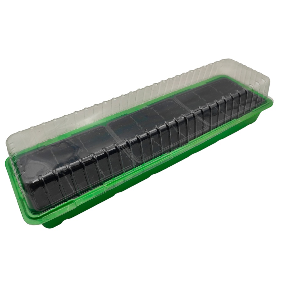 Мини-парник с крышкой 57х18х12см (3шт. мини-кассеты по 6яч., крышка, поддон) (полистирол) цветной