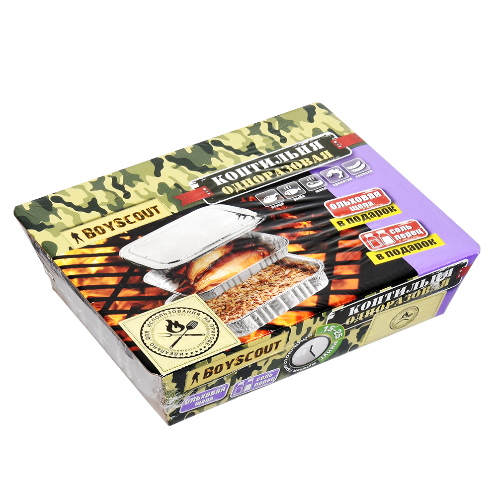 Коптильня одноразовая предназначена для горячего копчения продуктов (рыбы, мяса, птицы и др.) на открытом воздухе.