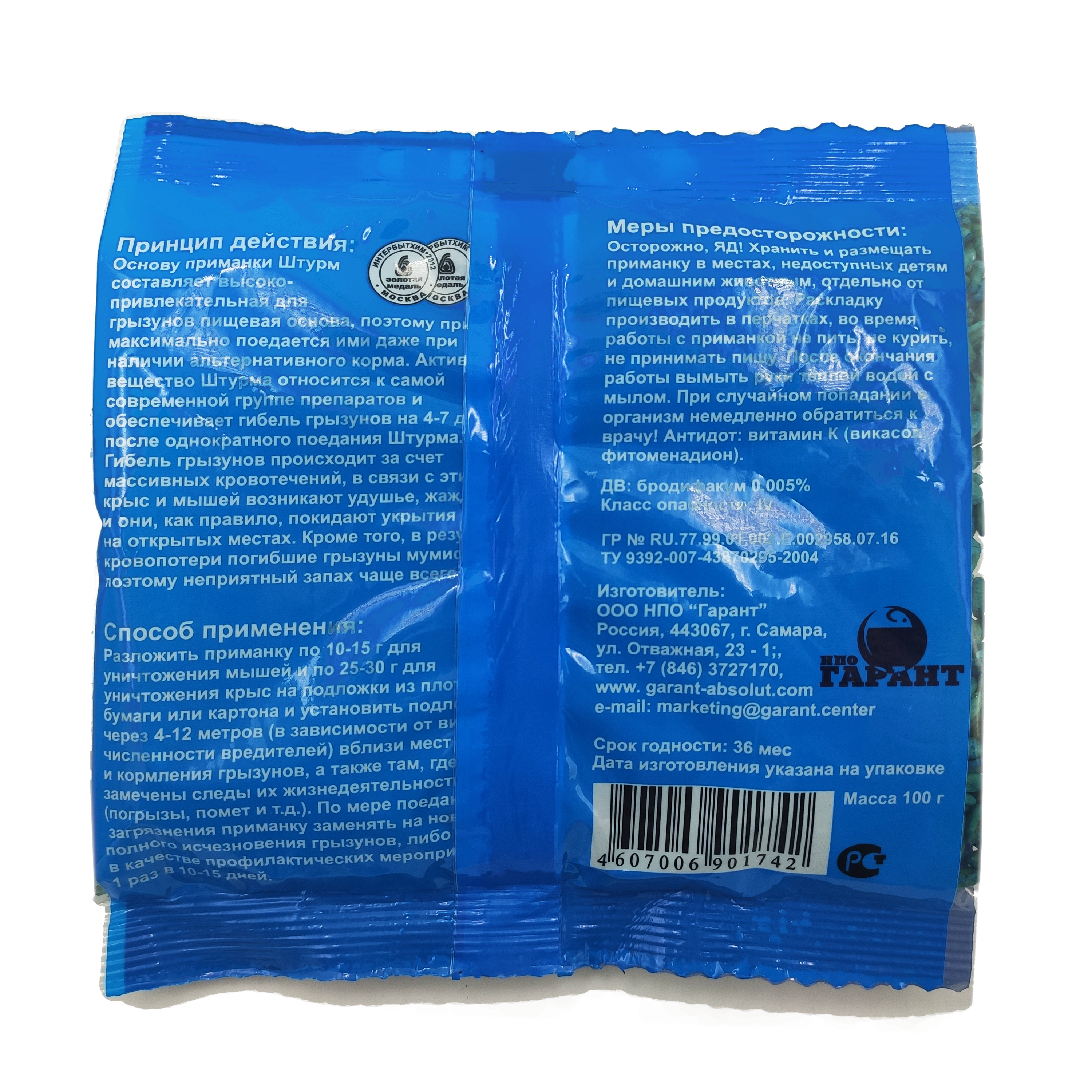 Универсальная зерновая приманка для уничтожения мышей и крыс. Основу составляет зерно пшеницы с добавлением кукурузы, что значительно повышает привлекательность приманки для грызунов. Активное действующее вещество относится к группе самых эффективных на сегодняшний день.